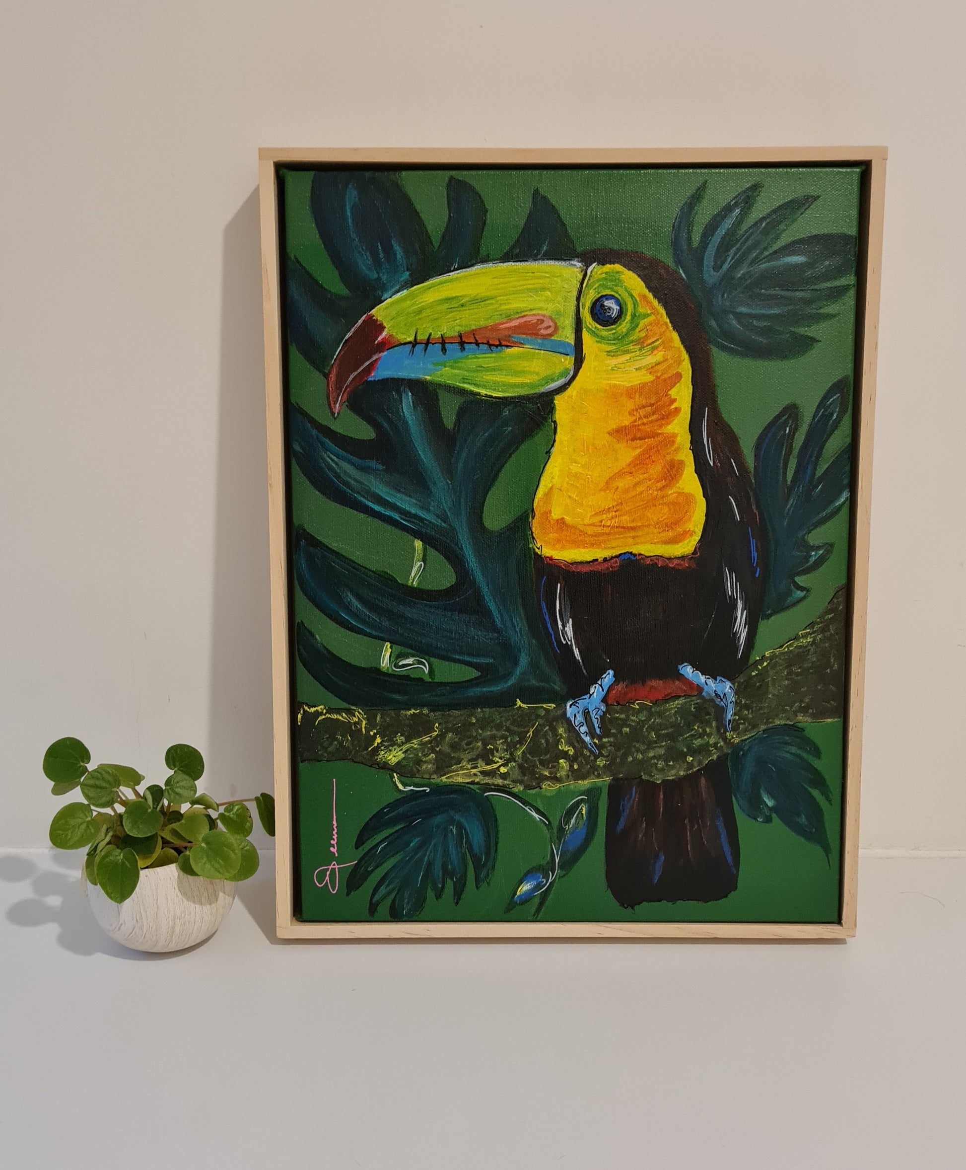 Original handmade artwork. Punk the Toucan is a vibrant painting ready to bring a pop of color and cheekiness to any area.